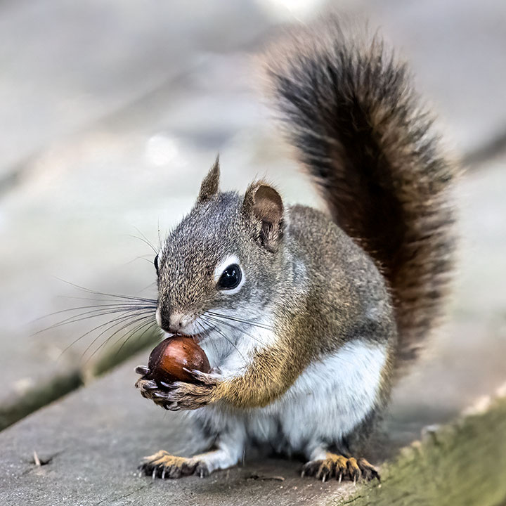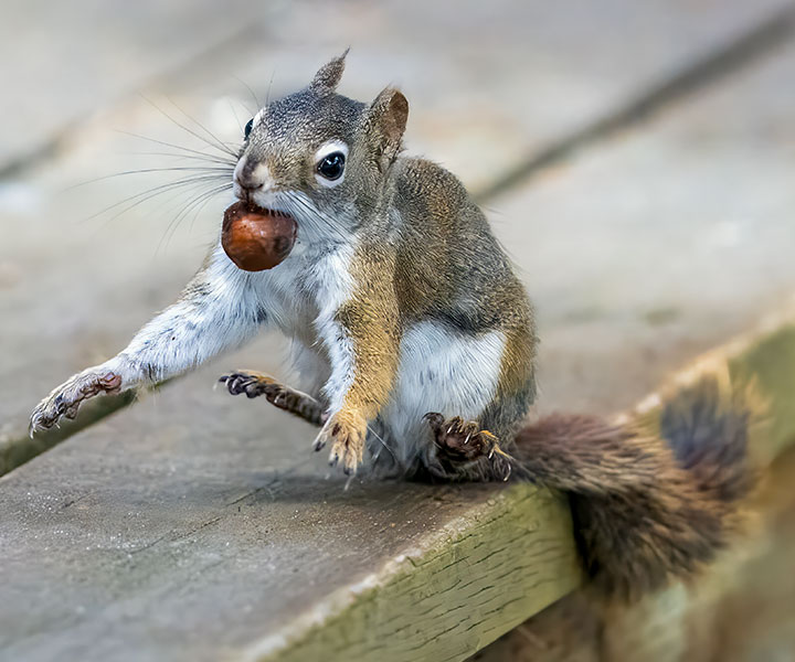 Deciding the berry is worth eating, the squirrel sets off with it in its mouth.
