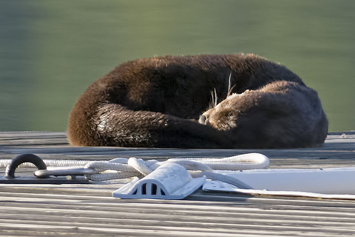 Saturday’s sunrise found me watching an otter sleeping on a local dock.