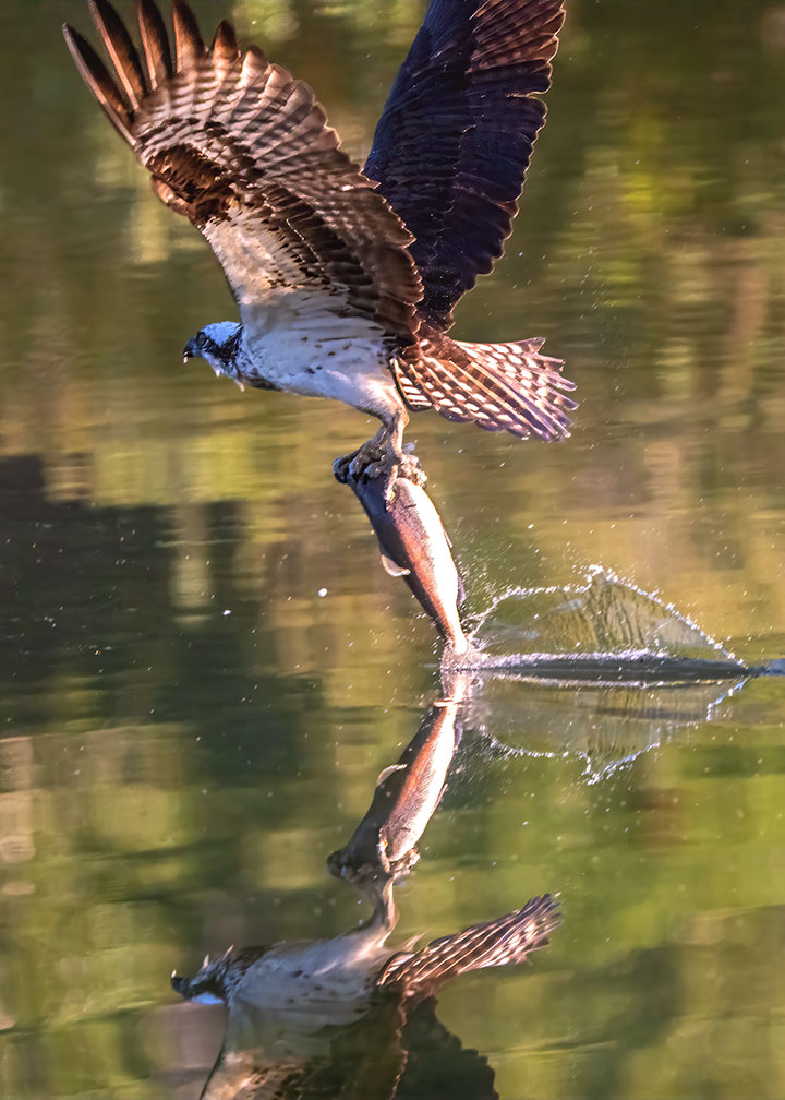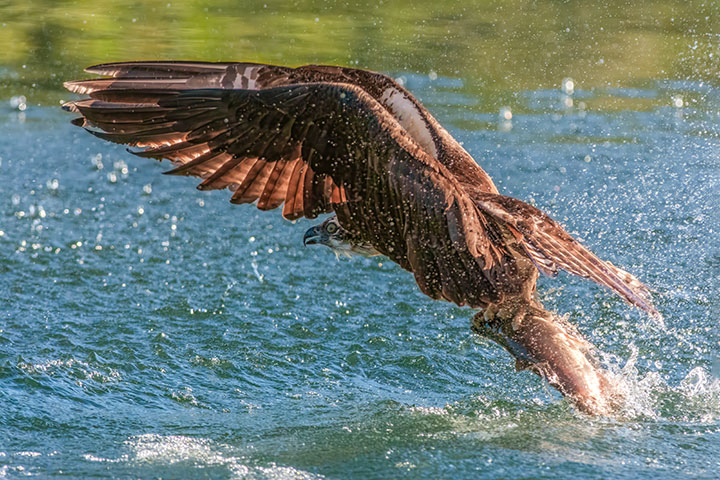 Ospreys eat fish. They dive into the lake and use their feet to catch a live fish. They capture ten or more fish a day for the period of five or six months that they are here. That is a good number of fish, considering the profusion of ospreys around the lake.