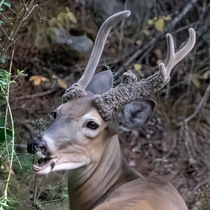 The name comes from the tangled, cactus-like antler growth caused by a disruption in testosterone levels, often due to injury or undescended testicles. Unlike typical bucks that shed their velvet each year, cactus bucks retain velvet-covered antlers that keep growing irregularly.