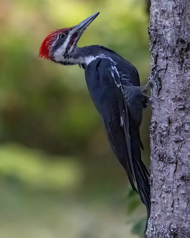 Like many birds, the Pileated Woodpecker is now encouraging its young to fly around.