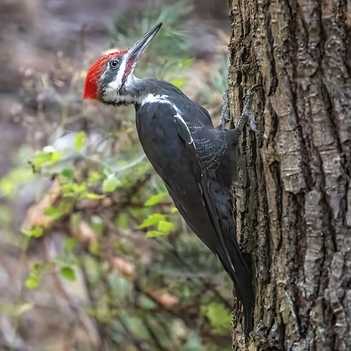 Two days ago, I published a blog that showed a juvenile male Pileated Woodpecker (blog.kootenay-lake.ca/?p=34868). It had only the faintest red moustache and yellow eyes. Now, either it 0r a brother has more developed features.