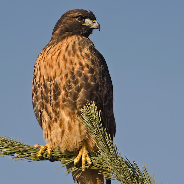 Finally, the most satisfying image of the day was another intermediate phase Red-tailed Hawk. Some of the richness of the tones can be credited to the hawk, some to the late afternoon winter sun.