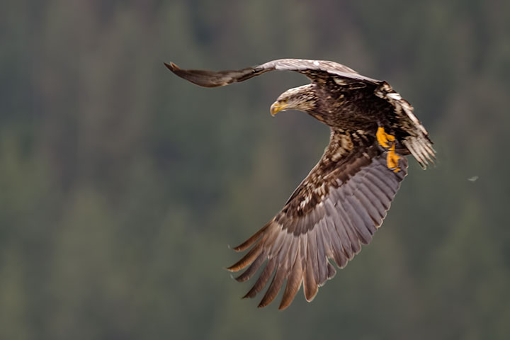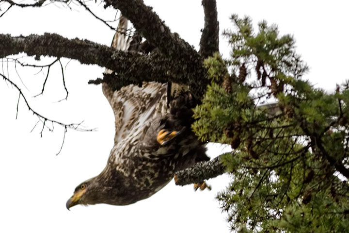 The first eagle was a subadult seen during a drive to town. The instant I pointed my camera, off it flew.