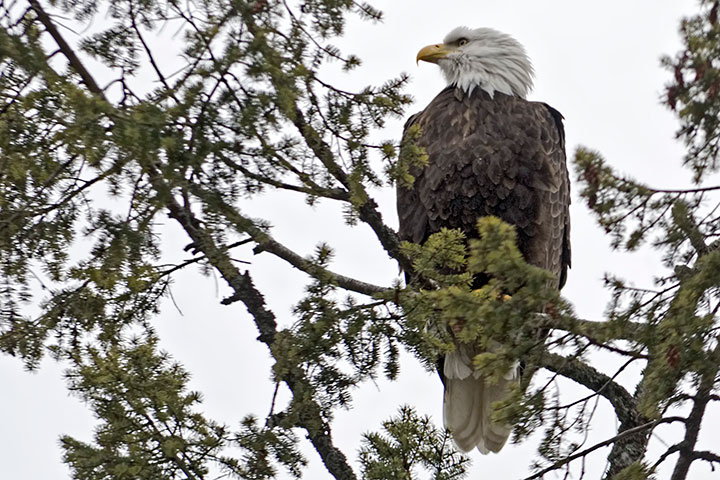 It is odd that sometimes I see birds in clusters. Normally, I only see Bald Eagles now and then. Although they are here year round, a week or two may pass between sightings. Yet, today I saw three along the lakeshore: one adult and two subadults.