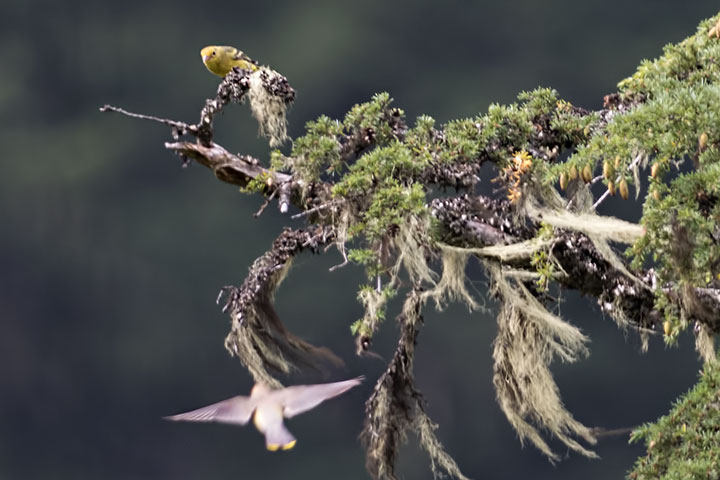 Elsewhere on the tree was a Cedar Waxwing, a slightly heavier bird.